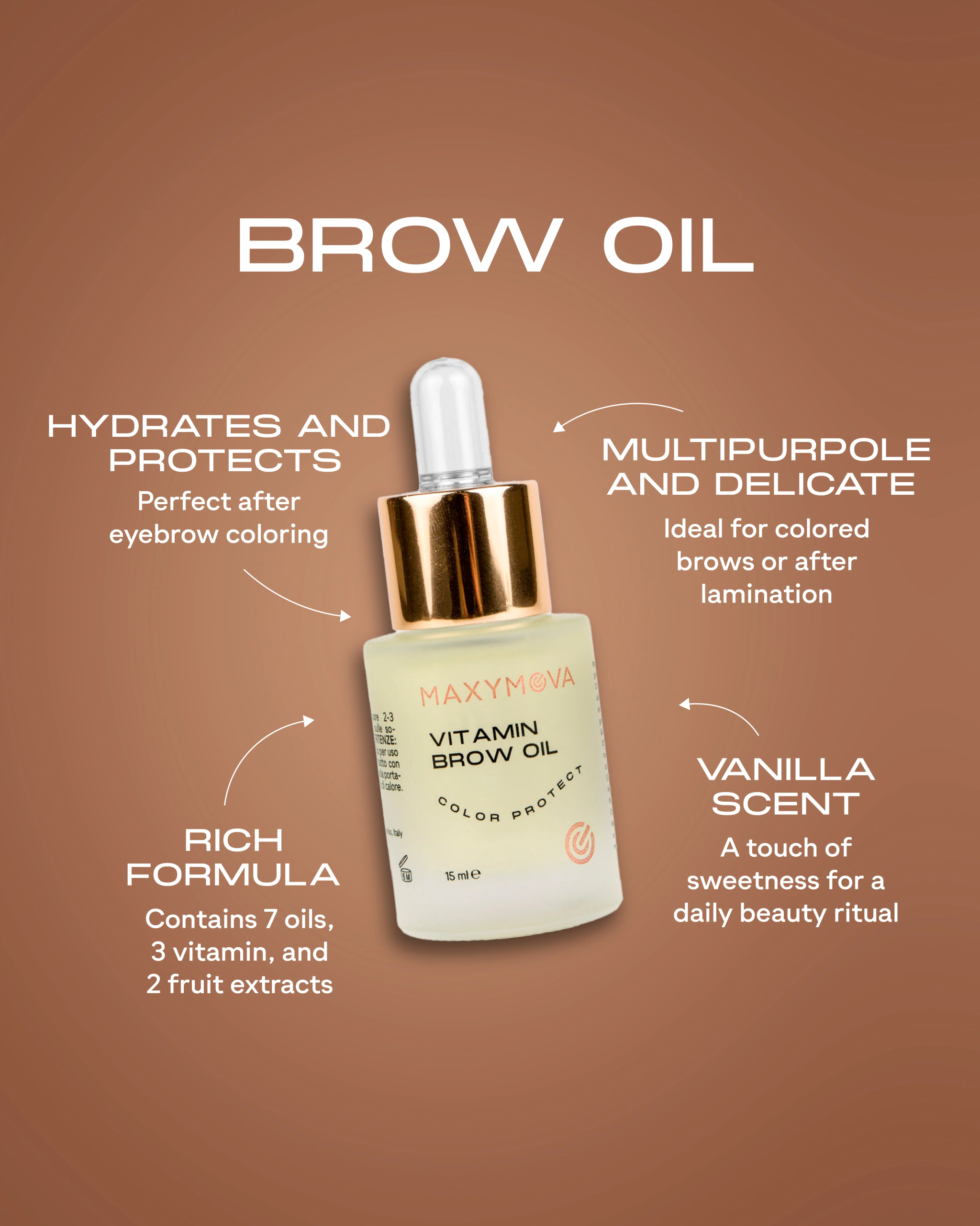 Aceite nutritivo y protector del color para cejas Vitamin Brow Oil MAXYMOVA 15ml