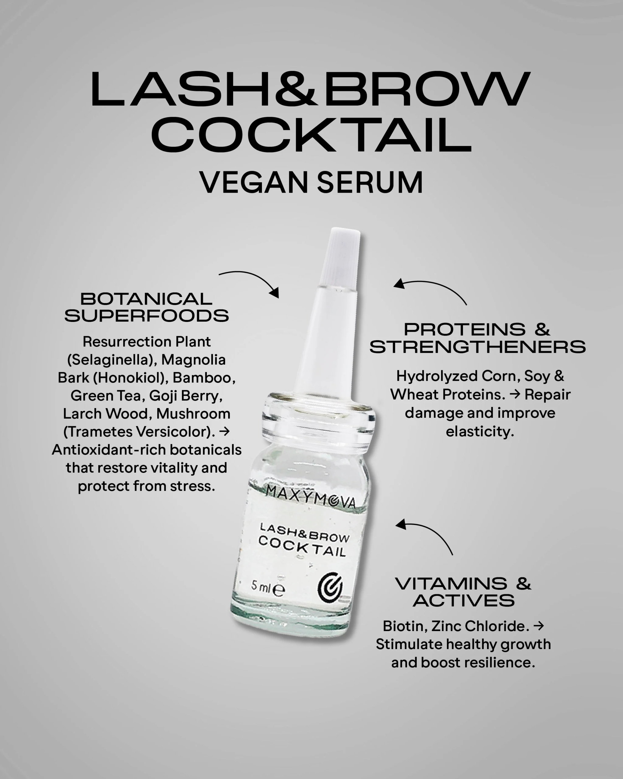 LASH&BROW COCKTAIL MAXYMOVA – Fórmula apta para veganos Sérum para pestañas y cejas, 5 ml